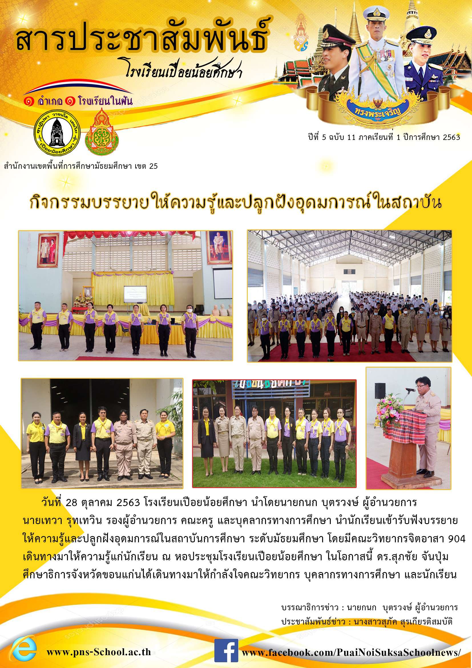 โรงเรียนเปือยน้อยศึกษา งานธุรการ 043 009 797, Facebook page : โรงเรียนเปือยน้อยศึกษา, E-mail : pns43215678@gmail.com