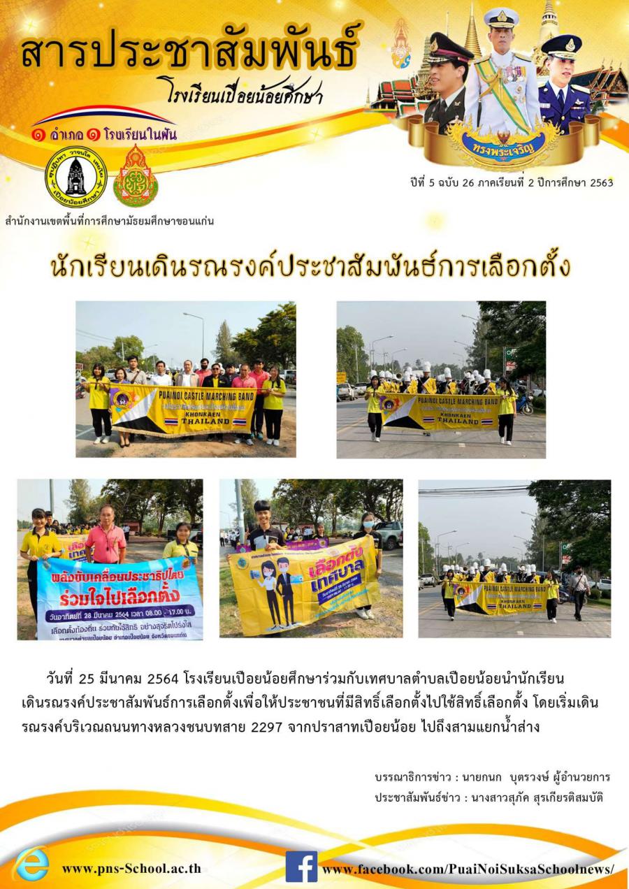นักเรียนเดินรณรงค์ประชาสัมพันธ์การเลือกตั้ง