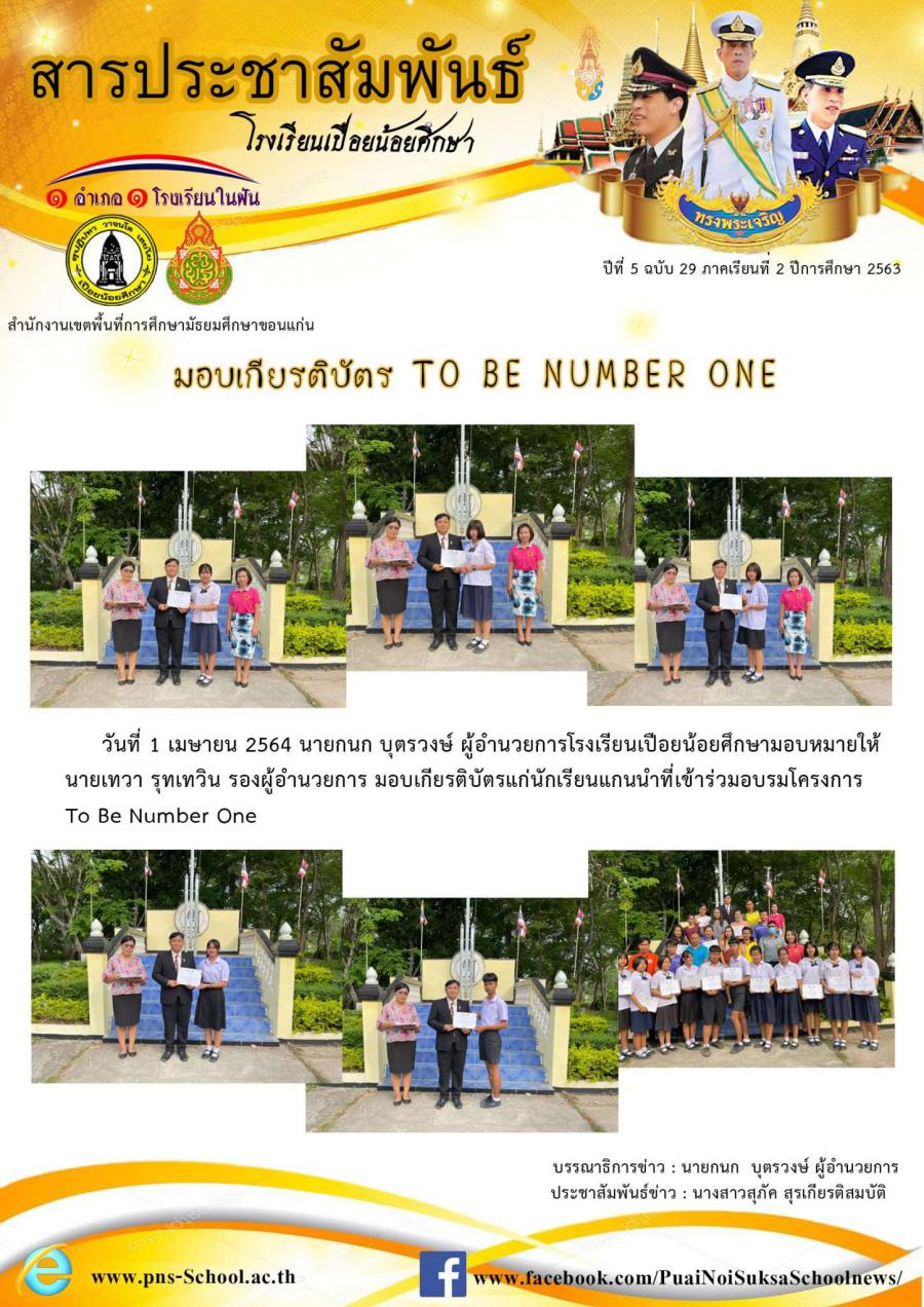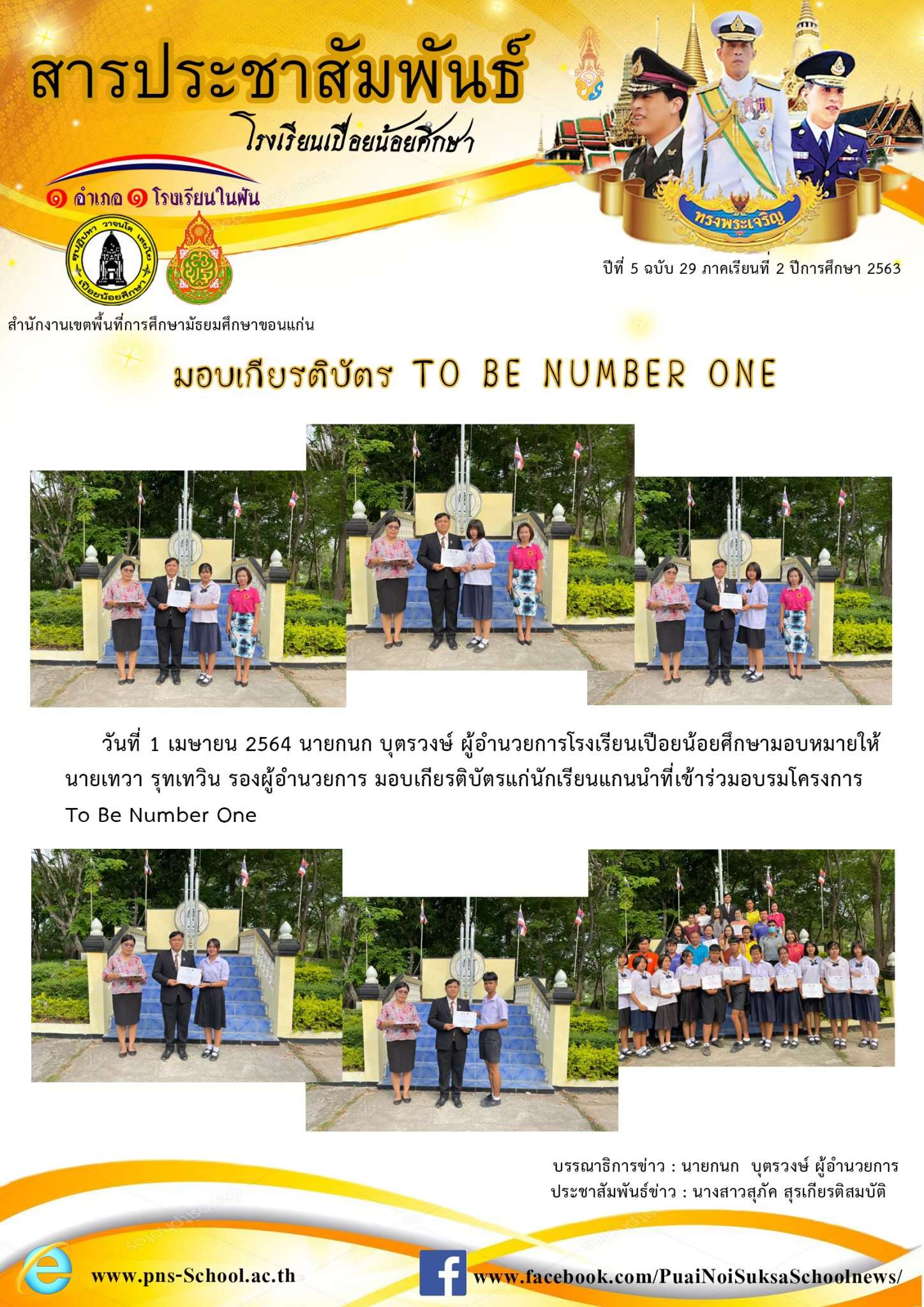 กิจกรรมมอบเกียรติบัตร ทูบีนัมเบอร์วัน