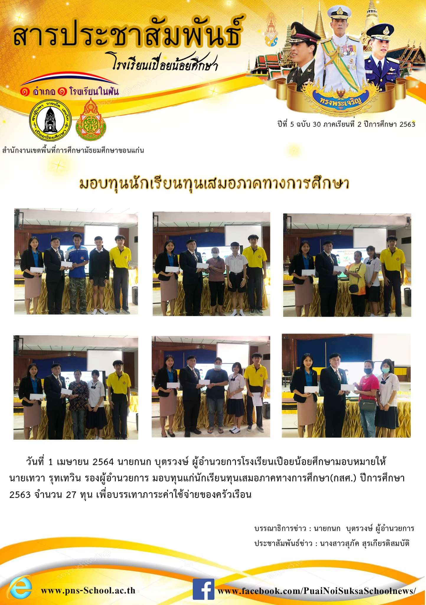 โรงเรียนเปือยน้อยศึกษา งานธุรการ 043 009 797, Facebook page : โรงเรียนเปือยน้อยศึกษา, E-mail : pns43215678@gmail.com
