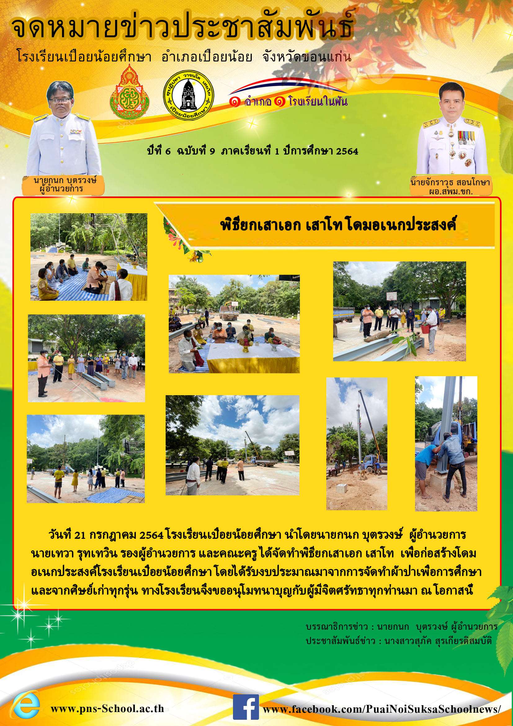 โรงเรียนเปือยน้อยศึกษา งานธุรการ 043 009 797, Facebook page : โรงเรียนเปือยน้อยศึกษา, E-mail : pns43215678@gmail.com