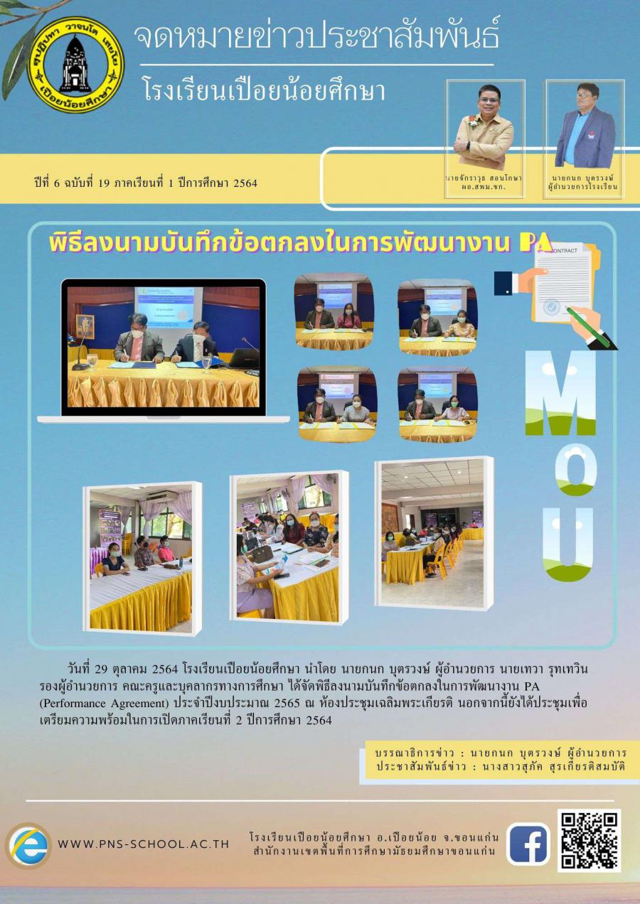 พิธีลงนามบันทึกข้อตกลงในการพัฒนางาน PA (Performance Agreement) ประจำปีงบประมาณ 2565