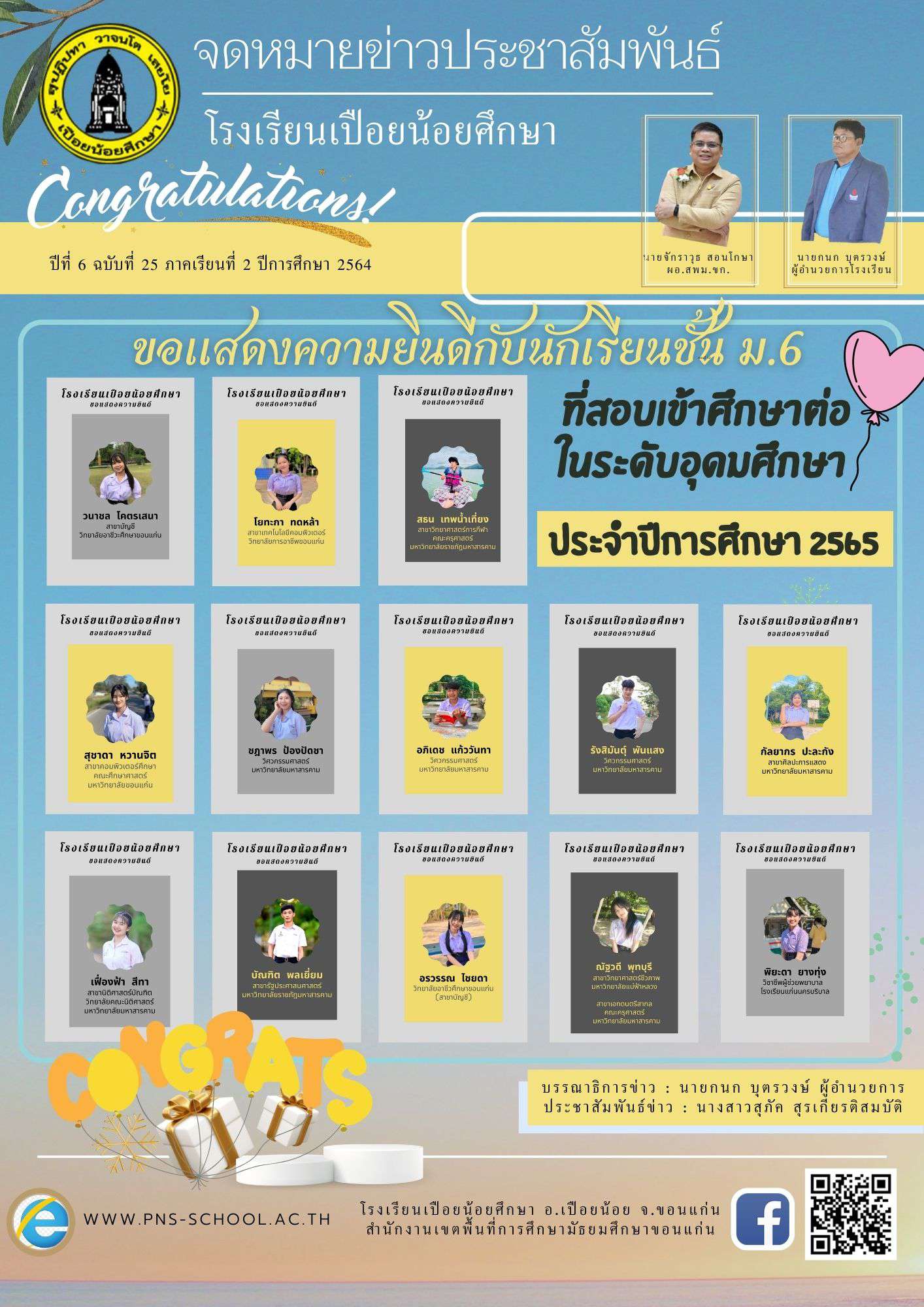 ขอแสดงความยินดีกับนักเรียนชั้น ม.๖ ที่สอบเข้าศึกษาต่อในระดับอุดมศึกษา ประจำปี ๒๕๖๕