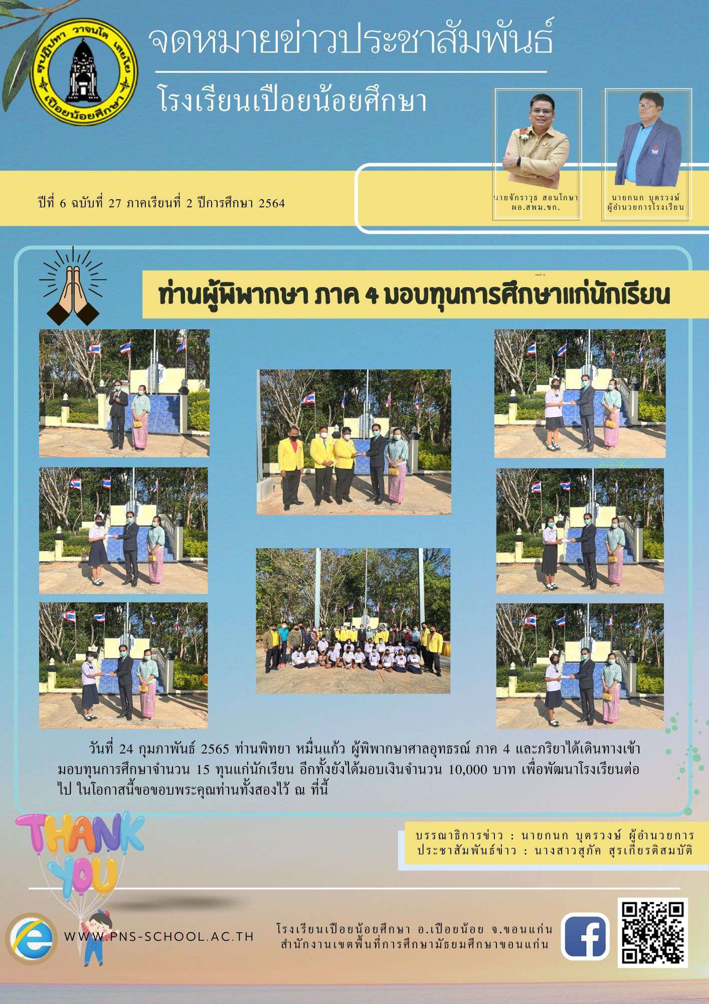 โรงเรียนเปือยน้อยศึกษา งานธุรการ 043 009 797, Facebook page : โรงเรียนเปือยน้อยศึกษา, E-mail : pns43215678@gmail.com