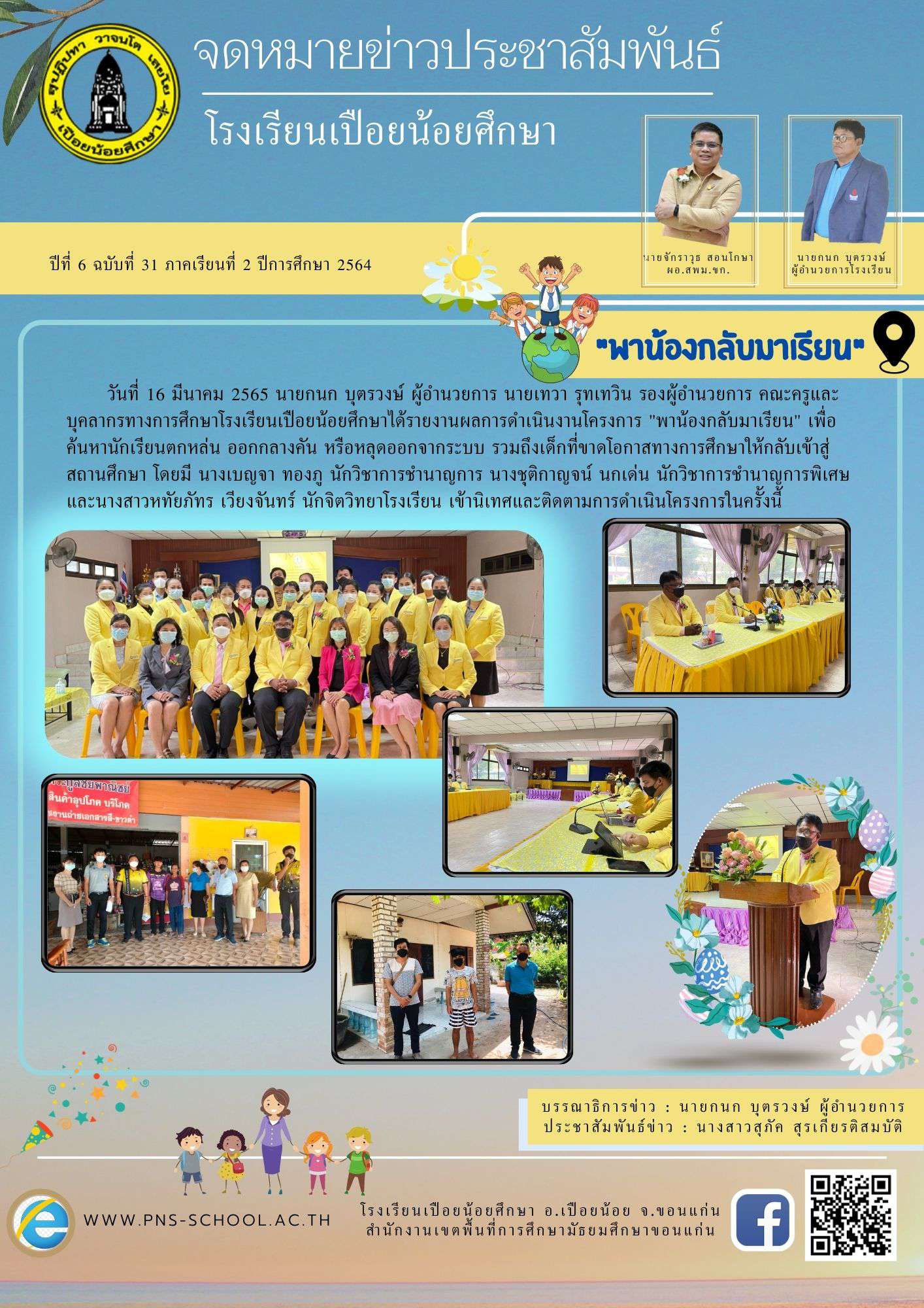 โรงเรียนเปือยน้อยศึกษา งานธุรการ 043 009 797, Facebook page : โรงเรียนเปือยน้อยศึกษา, E-mail : pns43215678@gmail.com