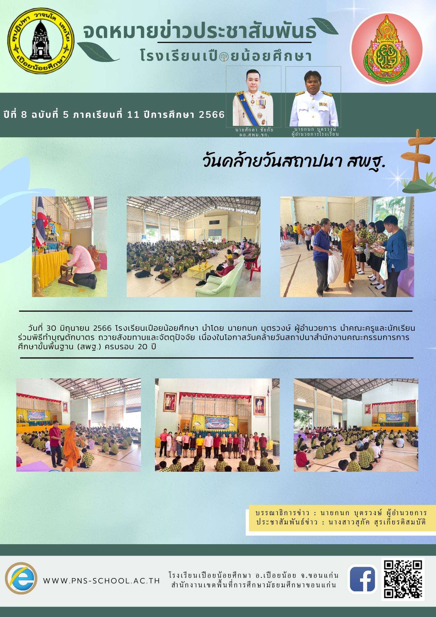 โรงเรียนเปือยน้อยศึกษา งานธุรการ 043 009 797, Facebook page : โรงเรียนเปือยน้อยศึกษา, E-mail : pns43215678@gmail.com
